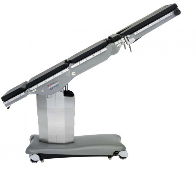 Schaerer Arcus 601 general surgery table lifts 1,100 lbs and articulates 800 lbs. The four (4) floor brakes self-level to add greater stability...